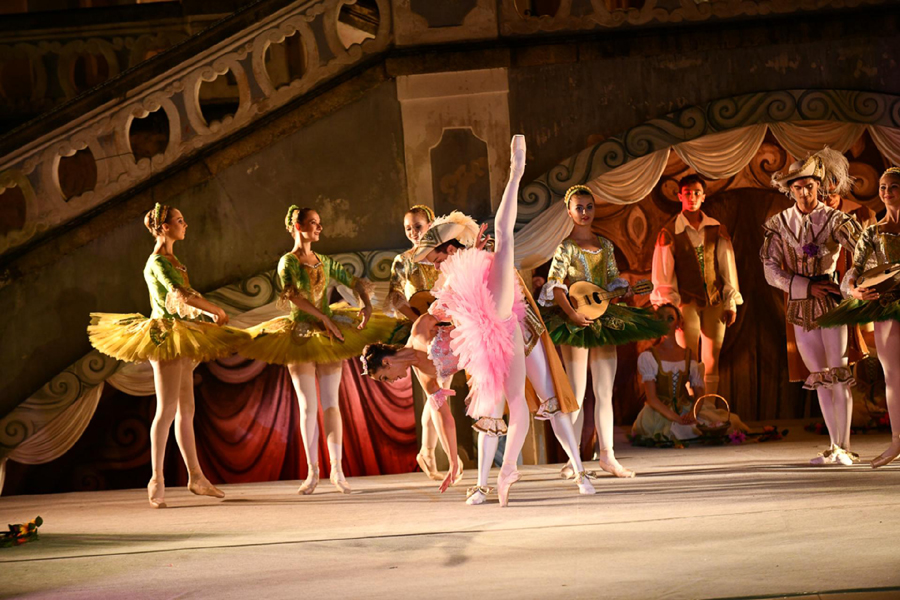 Taneční večer s podmanivou klasickou hudbou potěší malé i velké diváky chtivé zažít pohádkový příběh v noblesní taneční formě. Půl hodiny před každým představením, trvajícím devadesát minut, dostanou diváci příležitost k setkání s tvůrci u Kaskádové fontány a dozvědět se bližší informace k nadcházejícímu zážitku. Asistenty choreografa jsou Kateřina Slavická a Lukáš Slavický, účinkují Mai Iwamoto /Alisa Mykhailitis (Růženka), Jonathan Riveros Suarez / Karel Audy (Princ Desiré), Zdeněk Mládek (Carabosse), Béla Kéri Nagy (Král), Petronela Bogdan (Královna), William Steers (Catalubutte), Sophie Debou (Šeříková víla), M. Vomáčková, L. Sacardo, H. Tomono, M. Fujisaki (víly).