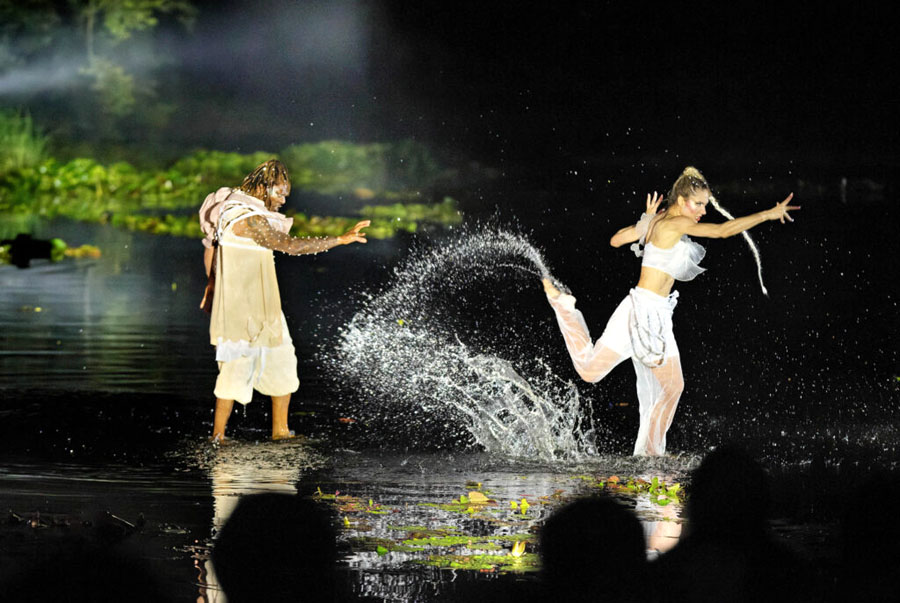 ČESKÝ KRUMLOV – Diváci si vychutnali špičkové výkony umělců a silné emoce vyvolané pod hlavním tématem Nečekaná spojení.Úvodní večer v pátek 11. července proměnil zámecký park s jezírkem v divadelní scénu. Barokní hudba se prolínala s živým tancem přímo na vodní hladině, famózní kreace vystřihla hlavní taneční hvězda Ida Victoria Nowakovska. Choreografie celého představení, na jehož hlavní část navázala barokně-rocková diskotéka, vyzněla velice působivě, stejně jako pěvecké árie v podání sopranistky Simony Houdy-Šaturové a úchvatná sóla trumpetisty Pacho Florese za doprovodu orchestru Barocco sempre giovanne řízeného Vojtěchem Spurným.